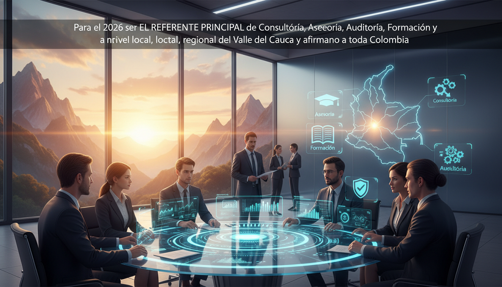 Para el 2026 ser EL REFERENTE PRINCIPAL de Consultoría, Asesoría, Auditoría, Formación y Toma de Decisiones Asertivas a nivel local, regional del Valle del Cauca y afirmando a toda Colombia.